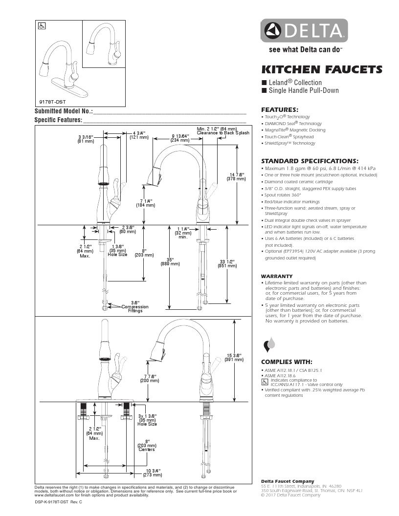 DELTAタッチ水栓 リランド Leland/9178T-RB-DST