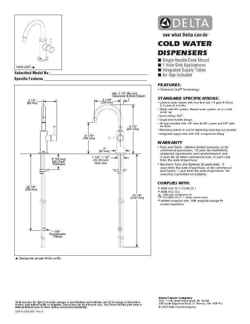 DELTA単水栓 コンテンポラリー Contemporary/1930-AR-DST