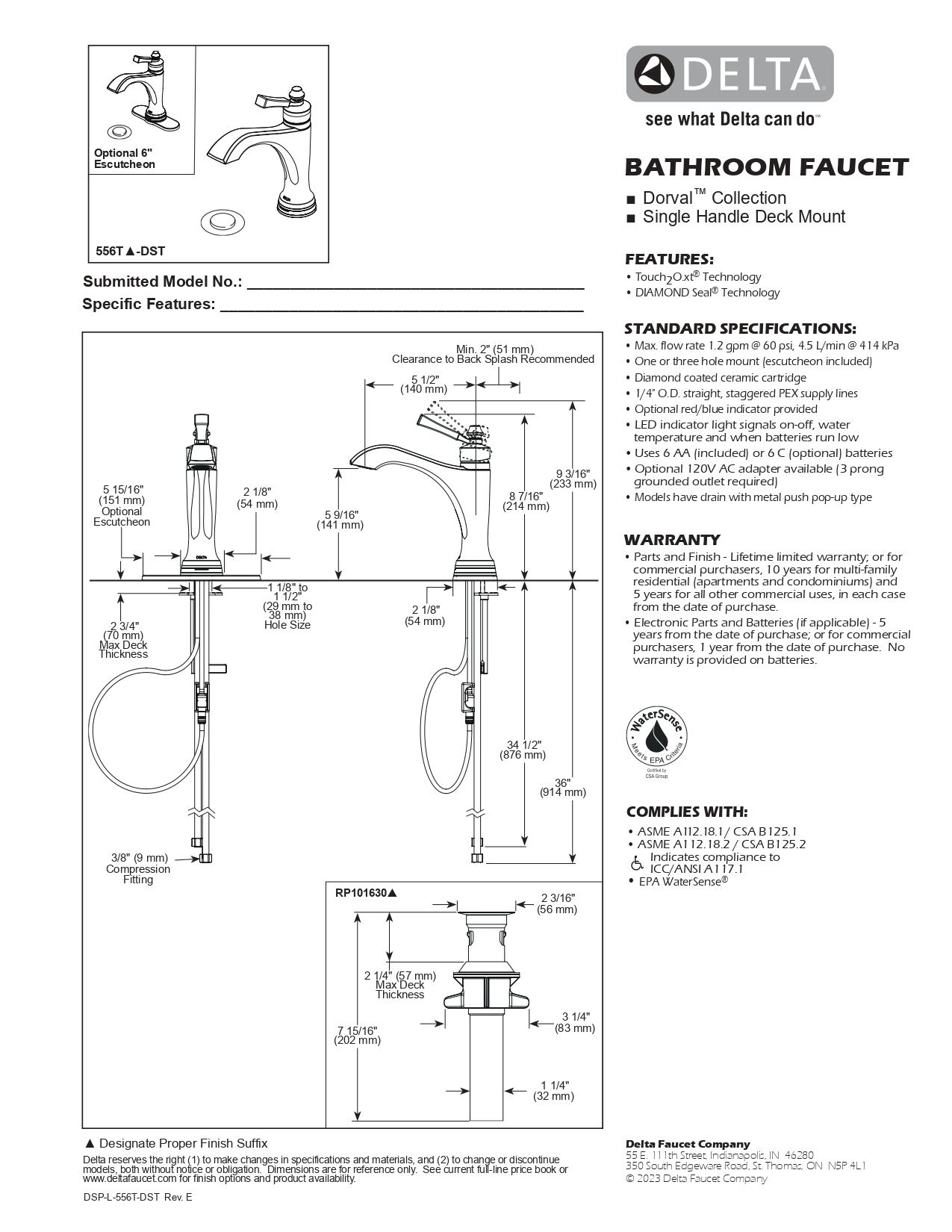DELTA洗面用水栓 タッチアンドセンサー ドーヴァル Dorval/556T-CZ-DST