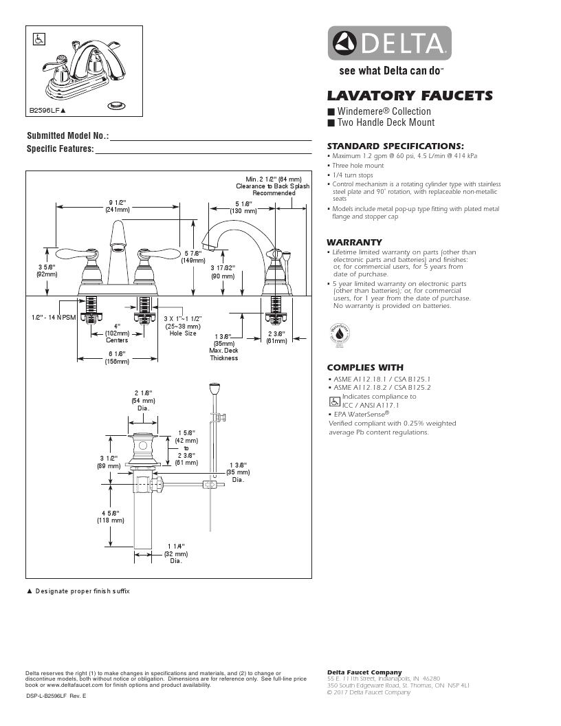 DELTA洗面用水栓 ウィンドモア Windemere/B2596LF-PB