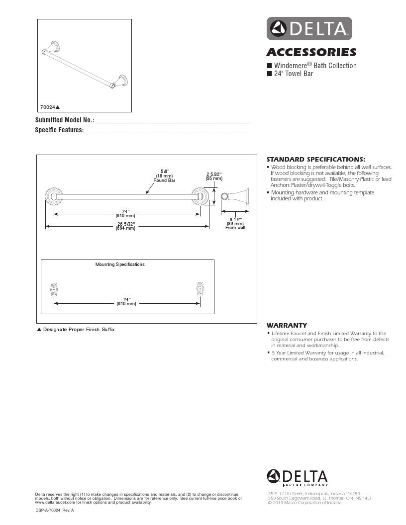 DELTA タオルバー 70024