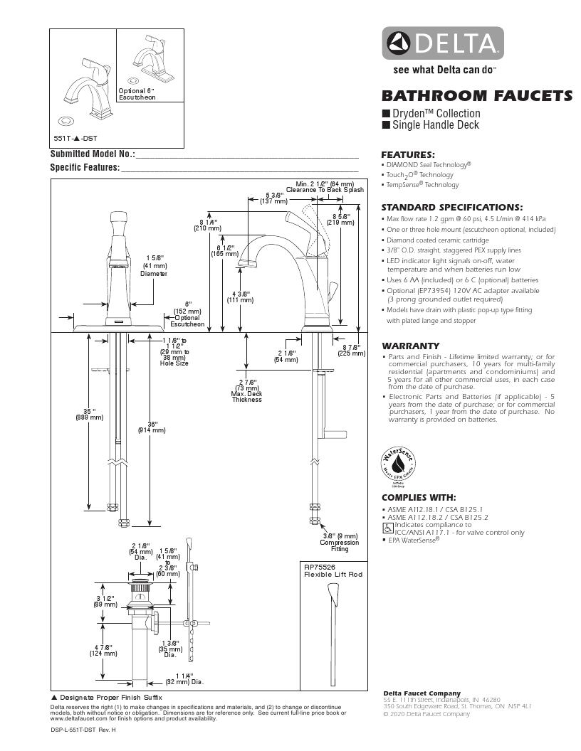 DELTA洗面用水栓 タッチアンドセンサー ドライデン Dryden/551T-DST