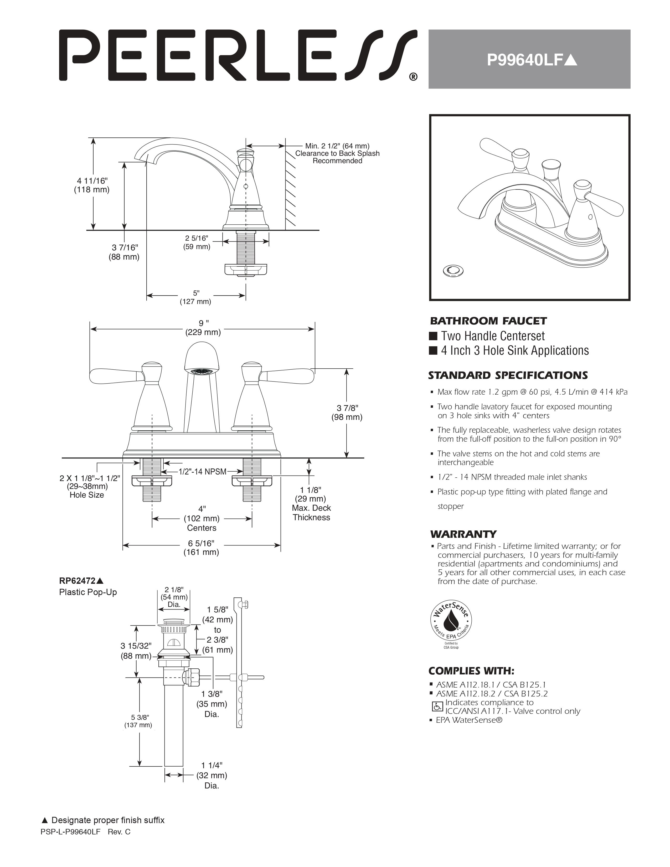PEERLESS洗面水栓 ピアレス PEERLESS/P99640LF-PB