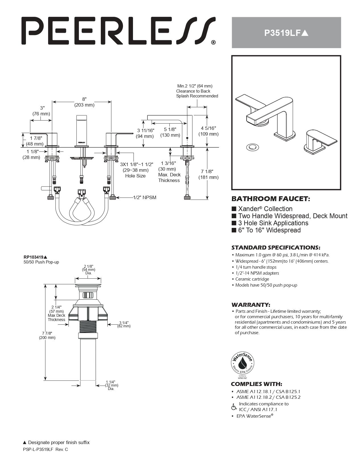 PEERLESS洗面水栓 サンダー XANDER/P3519LF